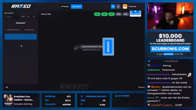Diskussion über Blackjack-Strategien und Twitch-Sichtbarkeit