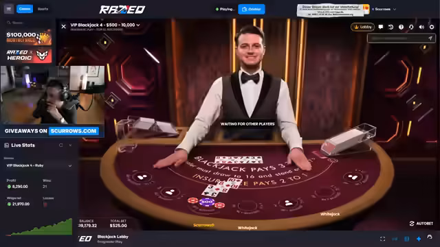 01:43:23Es wird Scrolls.com als bester Casino-Provider beworben. Nutzer erhalten durch den Streamer exklusiven Zugang, massive Boni, einen VIP-Transfer von bestehenden Konten, persönliche Hilfe im Discord, kostenfreie NBA-Tipps, Analysen und keine Auszahlungslimits. Zusätzlich gibt es eine Geld-Zurück-Garantie und Giveaway-Teilnahme. Die Einzahlung ist sowohl mit Krypto als auch Fiat möglich (Standard KYC).