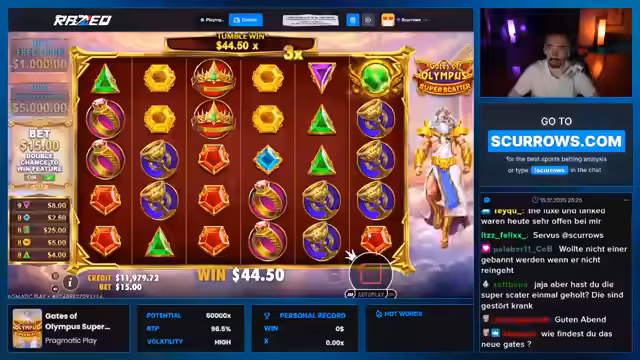00:00:00Der Streamer startet mit einem Slot-Spiel im Gebiet 'Korn' und erklärt die Mechaniken von Gates of Olympus. Er diskutiert die Strategie der Fünffach-Chance, bemerkt aber enttäuschende Ergebnisse trotz hoher Einsätze. Mehrfach erwähnt er Verluste und fehlende Gewinnkombinationen, während er die Spielfunktionen wie Multiplikatoren und Freispiele analysiert. Trotz einiger Gewinne zeigt er sich frustriert von der hohen Volatilität und den geringen Auszahlungen.