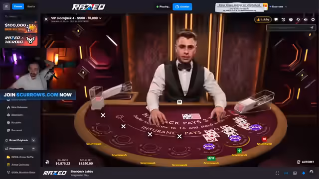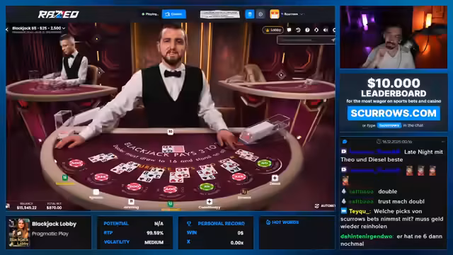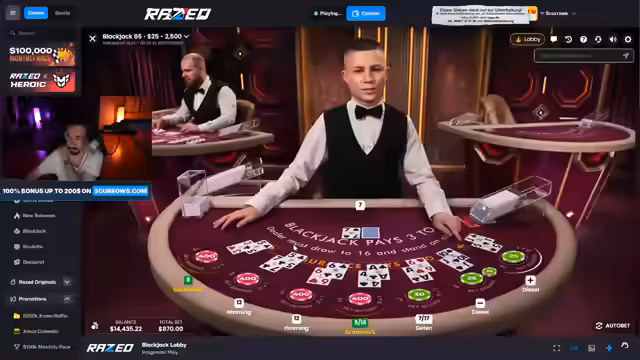 01:14:29Die Session startet mit den ersten Blackjack-Runden. Es wird über Gewinn- und Verlustphasen berichtet, insbesondere drei anfängliche Niederlagen gefolgt von drei Siegen. Diskussionen über strategische Entscheidungen wie Split und Double dominieren, wobei die Wahrscheinlichkeit solcher Züge kritisch hinterfragt wird. Dramatische Runden mit hohen Einsätzen werden detailliert beschrieben, bei denen Kartenziehungen zu Spannung und Frustration führen. Die emotionalen Reaktionen auf glückliche und unglückliche Ziehungen werden deutlich, während Spielmechanismen analysiert werden.