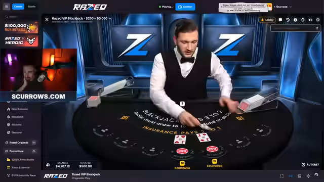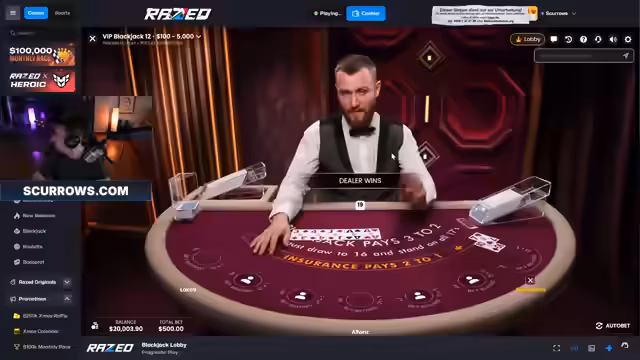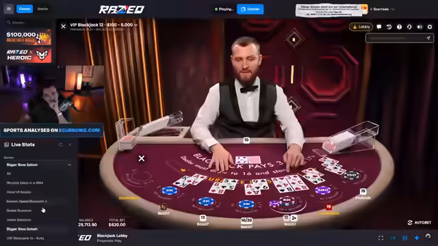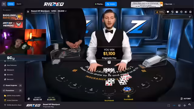 01:00:14Der Fokus verschiebt sich zu Blackjack mit sehr hohen Einsätzen, wobei der Streamer seine Spielstrategien diskutiert und Side-Bets einsetzt. Er positioniert sich als mutiger High-Roller im Vergleich zu anderen Streamern und kommentiert die Spielzüge kritisch, insbesondere wenn Mitspieler riskante Entscheidungen treffen. Die Runden werden mit Spannung verfolgt, während Gewinne und Verluste dynamisch wechseln und die Einsätze steigen.