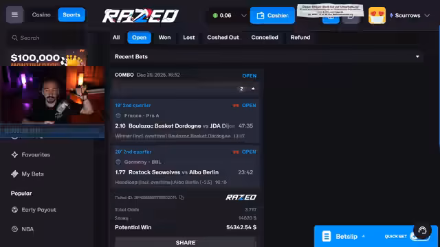 03:37:54Der Schwerpunkt verlagert sich auf Sportwetten, insbesondere auf Basketballspiele. Der Streamer analysiert intensive ein Spiel zwischen Alba Berlin und einem französischen Team. Spannend wird es, als eine ursprünglich sichere 16-Punkte-Führung gefährlich zusammenschmilzt. Die emotionale Bandbreite reicht von Euphorie bei wichtigen Dreier-Würfen bis hin zu Frustration über vertane Chancen. Parallele Tipps für NBA-Spiele werden gegeben, darunter Atlanta Hawks und Philadelphia Sixers.