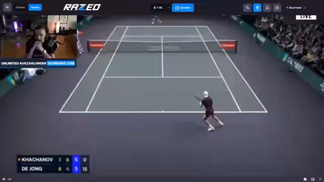 00:46:40Nach einer Verlustserie beim Slots setzt der Streamer 10.000 Euro auf eine Tennis-Wette, bei der die Spielerin Andreva als Favoritin galt. Er spricht eine sehr hohe Quote von 2.75 an und ist sich des Gewinns sicher. Trotz einer klaren Führung von 30-0 im Entscheidungssatz gibt Andreva das Spiel mit 5:7 und im Tiebreak 5:7 ab. Der Streamer ist geschockt und bezeichnet den Verlust als 'krankhaft' und 'betrügerisch'.