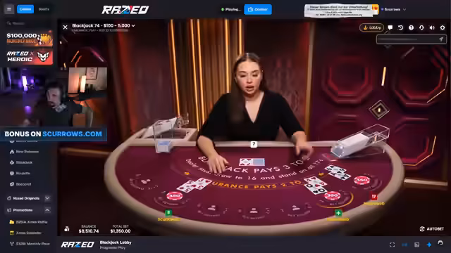01:42:18Der Streamer absolviert intensive Blackjack-Runden mit hohen Einsätzen und Sidebets. Nach anfänglichen Gewinnen und Double-Downs kommt es zu emotionalen Ausschlägen bei verlorenen Händen, besonders als die Bank mehrfach perfekte 20er oder 21er zieht. Diskussionen über Spielstrategien und Taktikwechsel dominieren diese Phase, begleitet von Frustration über unglückliche Kartenkombinationen trotz guter Starthände wie Ass-10-10.