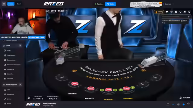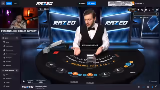 06:04:13Nach der Diskussion über die Spielsucht wechselt der Streamer zum Blackjack, wobei er und Batzi Schwierigkeiten haben, einen freien Tisch zu finden. Die Tische sind voll, was der Streamer als 'Abzocke' bezeichnet. Während des Spiels kommt es zu weiteren Problemen: Der Streamer hat Bonusguthaben, das er versehentlich aktiviert hat und das seine Einzahlung blockiert. Er muss das Bonusguthaben löschen, um wieder mit echtem Geld spielen zu können. Trotzdem verliert er schnell Geld und bittet Batzi um eine Überweisung, was jedoch aufgrund von Einzahlungslimits nicht sofort möglich ist. Die Blackjack-Session ist von Frustration und Verlusten geprägt, wobei der Streamer die Dealer und das Spielsystem als 'Scam' bezeichnet.