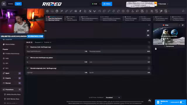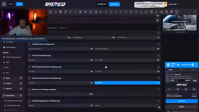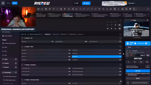 05:56:24Nach einer frustrierenden Roulette-Session, die der Streamer als 'Schmutzgame' bezeichnete, wechselt er unter erheblichem Zeitdruck zu NBA-Wetten. Er versucht, schnell Buchungscodes für seine Wetten zu finden, stößt jedoch auf technische Probleme, da der Markt 'verbuggt' ist und er seine Wetten neu setzen muss. Mit nur noch wenigen Minuten bis zum Spielbeginn konzentriert er sich auf Player Props für Mitchell (über 27 Punkte) und Brunson (Assists). Trotz der Hektik und des bevorstehenden Spielstarts um Mitternacht, bleibt er optimistisch, dass seine Wetten erfolgreich sein werden. Er betont die Vorteile von Skurrus.com für andere Spieler, auch wenn er selbst unter großem Stress steht.