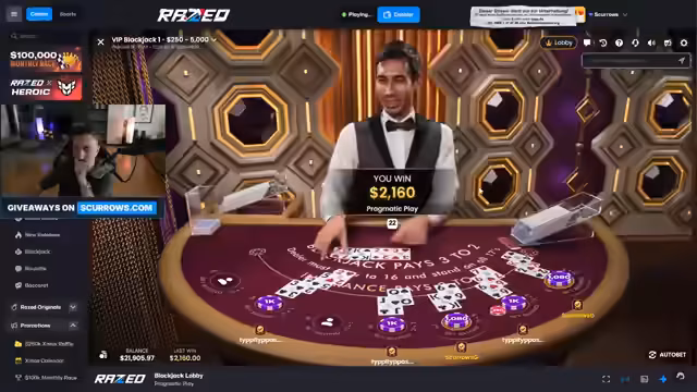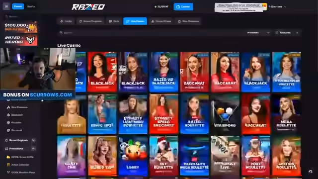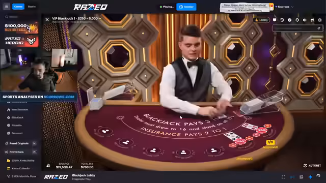 01:49:47Gegen Ende des Streams wird noch einmal die Notwendigkeit erwähnt, sich auf scurrows.com anzumelden, um Zugang zum exklusiven Discord-Bereich zu erhalten. Der Streamer führt weitere Blackjack-Runden durch und kommentiert die Spielstrategien. Abschließend bedankt er sich bei den Zuschauern und kündigt an, dass die Session beendet wird.