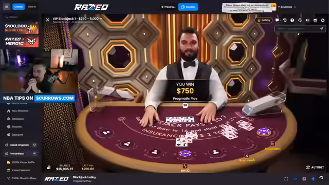 00:00:35Der Streamer berichtet von sehr erfolgreichen NBA-Wetten der letzten Tage mit 7 von 7 richtigen Tipps und kündigt weitere Spiele an. Er erwähnt, dass exklusive Inhalte auf scurrows.com und Discord verfügbar sind. Zudem plant er Giveaways und spricht über seine Strategie, wetten basierend auf Einzelspielen statt Kombiwetten zu platzieren. Trotz anfänglicher Verluste in der Nacht zuvor hatte er später wieder Erfolg.