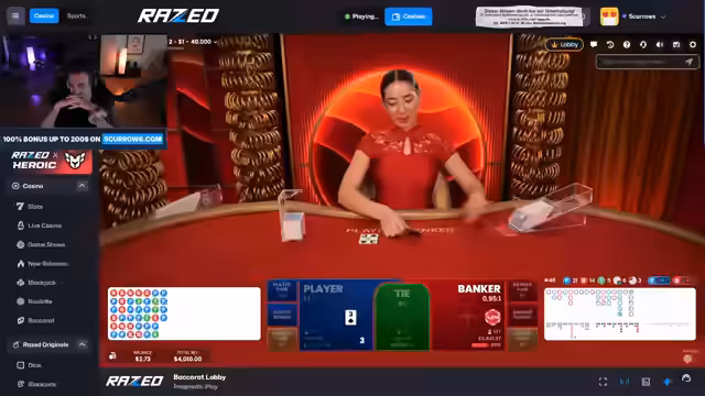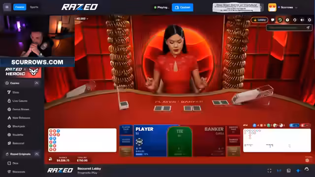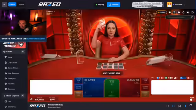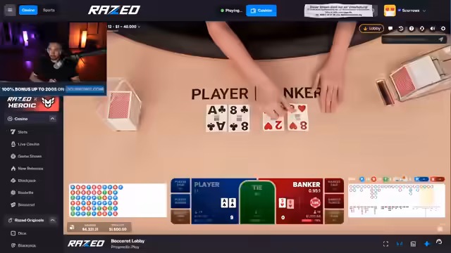 02:15:26Der Streamer wechselt zu Baccarat in der Hoffnung, sein Glück zu wenden, befindet sich aber weiterhin in einer schwierigen Situation. Er überlegt, ob er Super-Freispiele gamblen soll, verpasst jedoch eine vielversprechende Runde, da er zu langsam war. Die Regeln von Baccarat, bei dem der Spieler gewinnt, der näher an der 9 ist, werden kurz erklärt. Trotz des Wechsels zum neuen Spiel bleibt das Pech bestehen. Er erlebt einen Missklick, der zu einem Verlust führt, und seine Strategie, auf Rot oder Player zu setzen, scheint nicht aufzugehen. Die Einsätze sind niedriger, was das Zurückgewinnen der Verluste erschwert. Die Frustration über die anhaltende Pechsträhne ist deutlich spürbar, während er versucht, mit verschiedenen Strategien doch noch zu gewinnen.