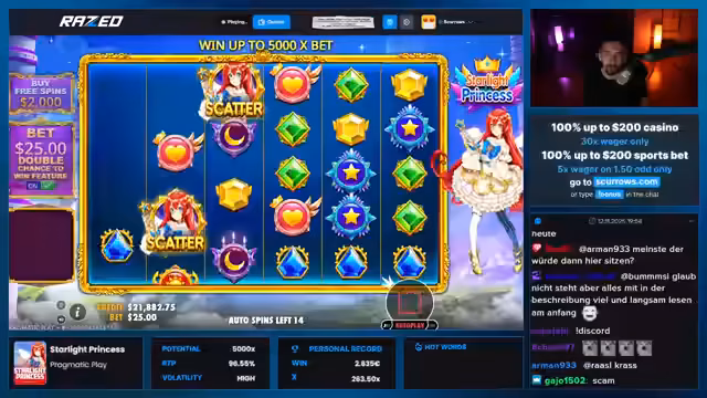 00:00:46Der Stream beginnt mit einer Begrüßung der Community. Der Streamer präsentiert das neue High Roller Casino und verweist auf scurrows.com als Plattform. Er betont die Wichtigkeit, sich von unseriösen Scam-Casinos zu distanzieren, und verspricht die "Scurrows-Garantie" für eine seriöse Spielerfahrung, basierend auf vorherigen Profit-Streams. Der Streamer kündigt einen längeren Stream von sechs bis acht Stunden Dauer an und zeigt seine Begeisterung für Bonusspiele, insbesondere im Slot Book of Ra.