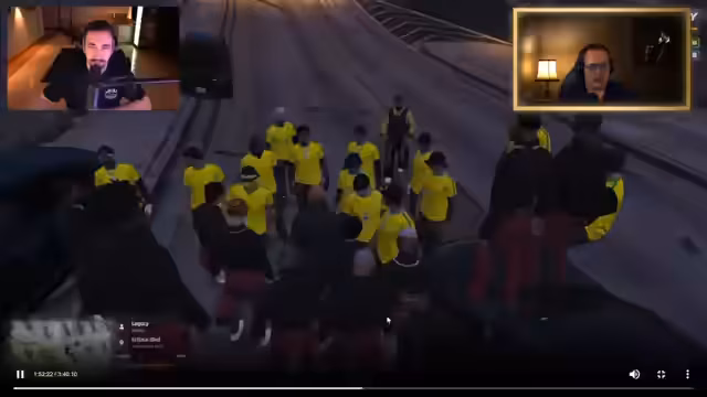 00:35:10Es wird eine Situation geschildert, in der eine neue Fraktion, Legacy, in einen Konflikt gerät, weil sie fälschlicherweise für Angreifer gehalten wird. Diesel versucht, die Situation zu klären und die neuen Spieler zu beruhigen. Es stellt sich heraus, dass die Schüsse von einer anderen Gruppe kamen. Diesel gibt den neuen Spielern Ratschläge und bietet seine Hilfe an. Er betont, dass er eigentlich hart durchgreifen würde, aber sich zurückhält, da er Gast von Kalito ist. Diesel trifft auf weitere Mitglieder von Legacy und versucht, Informationen über sie zu sammeln. Er fragt, ob sie für die Schießerei verantwortlich sind, was sie jedoch verneinen. Es stellt sich heraus, dass die wahren Täter bereits offline sind.