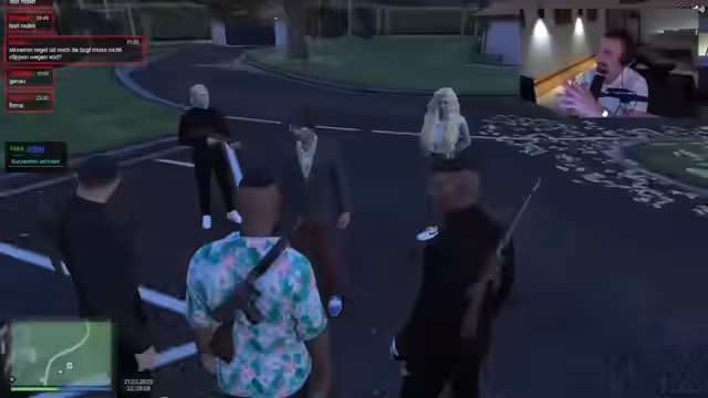 00:50:56Nach einer persönlichen Bemerkung über eine bevorstehende, zweite Haarpflanzungsoperation, die als letzte angekündigt wird, geht es zurück zu den taktischen Vorbereitungen für den Einsatz. Es wird die Fahrzeugflotte gesichtet, da schwarze G-Klassen und GLS bevorzugt werden. Die Aufgabe ist, die Autos bei Bennys zu lackieren, wobei eine schwarze Farbe mit weißer Unterbodenbeleuchtung als Standard festgelegt wird. Es werden zwei Personen pro Auto eingeteilt, und ein koordinierter Funk auf 966,33 wird für die Kommunikation etabliert.