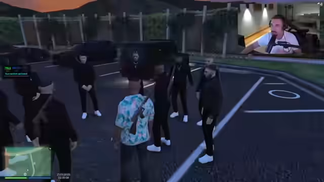 01:41:12Am Ölwerk angekommen, forderte der Streamer die Mitspieler auf, auszusteigen und Positionen zu halten. Es kam zu einer Auseinandersetzung mit Gegenspielern, wobei der Streamer einen von ihnen austrickste. Er lobte seine eigenen 'Fast Skills' und ordnete an, auf einen Gegner zu schießen. Anschließend forderte er alle auf, wieder einzusteigen und ihm zu folgen, wobei das letzte Auto auf Verfolger achten sollte. Ein liegengebliebenes Fahrzeug wurde geborgen, und der Streamer kritisierte das riskante Fahrverhalten seiner Gruppe. Er wies einen Mitspieler an, aus einem G-Klasse-Wagen auszusteigen und Waffen zu ziehen, während der Rest weiterfahren sollte. Der Streamer positionierte sich im Gegenverkehr und wies auf die verbesserte Waffe hin. Er forderte zur Vorsicht auf und wies einen Mitspieler an, sein Auto zu reparieren, während er auf weitere Verstärkung wartete. Er bestätigte, dass Funk und Handys abgenommen wurden und identifizierte einen herannahenden Ferrari als feindlich.