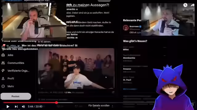 00:01:23Der Streamer startet mit einer Betrachtung eines aktuellen YouTube-Videos des Kanals 'nahewegs', auf das in seinem Discord reagiert wurde. Er erklärt, dass er das Video wegen der darin enthaltenen Aussagen von Papa Platte kritisch analysieren wird. Nach einer kurzen technischen Verzögerung und einem Verweis auf ein eigenes, demnächst erscheinendes Reaktionsvideo, wird der Fokus auf die Aussage von Papa Platte gelegt, Deutschland habe kein Migrationsproblem. Der Streamer äußert seine Unzufriedenheit mit diesem Statement, da es ihm als ignorant gegenüber den tatsächlichen Problemen erscheint und vermutet, dass dies dem Profit durch Werbepartner geschuldet sei.