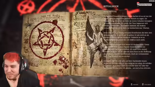 03:16:44Während der Ermittlungen im Farmhaus stößt der Streamer auf ein verfluchtes Hochbeet. Eine mother-Notiz enthüllt, dass die Familie Gaben aus Gräbern vergraben hat, um einen Fluch zu lindern, indem sie sie verbrennen. Ein entscheidender Fehler wird gemacht, da die Stimmen eines bösen Wesens antworten. Der Streamer muss nun gefluchte Gegenstände wie Puppen und Symbole aus Knochen sammeln und sie in einem Lagerfeuer verbrennen. Ein kurzer, unheimlicher Moment des Erfolgs kündigt an, dass der Fluch vielleicht auf eine andere Seele übertragen wurde, eine verdächtige Wendung in der Geschichte.