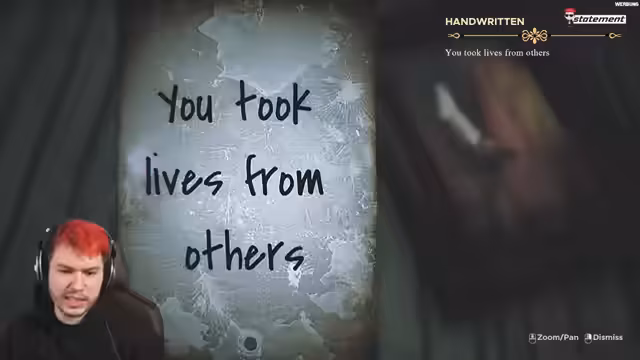 01:49:31Im Finale des Spiels vollzieht sich die Enthüllung, dass der gesendete Brief, der den Tod vieler Menschen, darunter eines Kindes, verursachte, die eigentliche Ursache für den Fluch der Insel ist. Die Erkenntnis, dass die eigene Handlung fatale Konsequenzen hatte, die weit über das aktuelle Ereignis hinausgehen, markiert den Höhepunkt der düsteren Erzählung. Der Streamer verabschiedet sich von seinem Publikum und beendet den Stream nach der intensiven und emotional aufwühlenden Erfahrung.