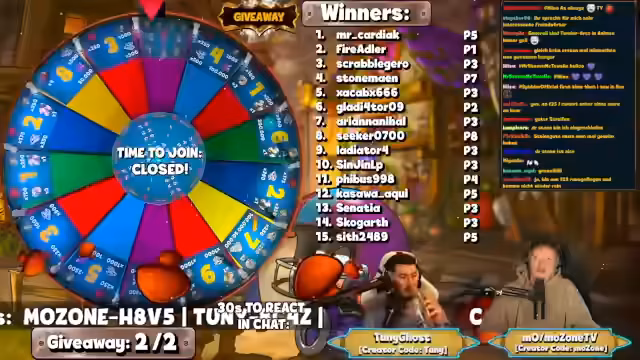 00:19:14Im Stream laufen mehrere Giveaways ab. Für eine Aktion müssen Zuschauer innerhalb von 30 Sekunden auf eine Chatnachfrage reagieren, um teilzunehmen. Ein interaktives Rad wird per Zufallsgenerator gedreht, um Gewinner zu ermitteln. Einige Teilnehmer haben technische Verzögerungen oder sehen die Nachricht zu spät. Streamer und Zuschänger unterhalten sich über das Aussehen des Rades und dessen Abnutzung. Die Moderation ruft zur Herzen-Spam-Aktion im Chat auf, um das Gemeinschaftsgefühl zu stärken.