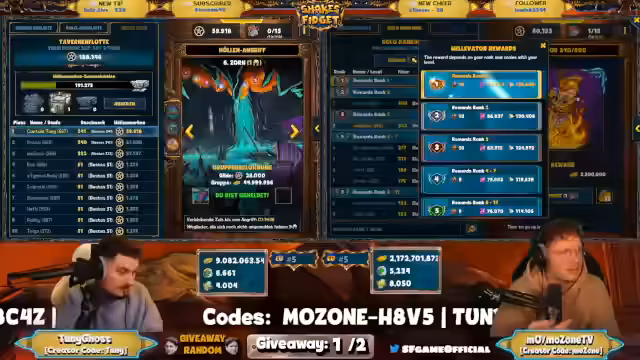 04:22:47Zusammen mit den anderen Streamern wird eine Kooperation geplant, mit einem Giveaway als zentralem Element. Das Giveaway wird im Chat angekündigt und die Regeln werden erklärt: Innerhalb von 30 Sekunden muss eine Reaktion erfolgen, sonst ist die Teiligung hinfällig. Die Teilnahme wird als geringer als 10% der Zuschauerzahl beschrieben. Es wird eine Ankündigung für einen zukünftigen Elevator Raid gemacht, bei dem der Vater von Shakes und Fidget als Ehrengast auftreten wird.