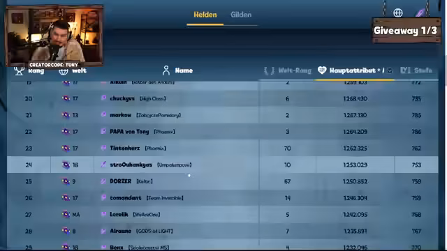 00:14:25Der Stream startet mit einem Early-Bird-Giveaway. Zuschauer haben eine Minute Zeit, das Keyword "Early Bird Birds" in den Chat zu schreiben, um an der Verlosung teilzunehmen. Der Streamer begrüßt die wachsende Zuschauerzahl und kündigt an, dass heute ein "relaxter Stream" ansteht. Nach Ablauf der Frist werden die Gewinner gezogen und erhalten verschiedene Pakete mit Spielwährung wie Kristalle und Pilze. Die Gewinner werden im Chat benachrichtigt und müssen sich innerhalb von 20 Sekunden melden, um ihren Preis zu erhalten.