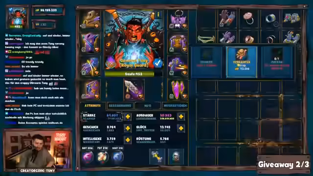 02:36:23Zum Ende des Streams gründet der Streamer spontan eine neue Gilde namens 'Trümmerhaufen' für seinen EO21-Account. Das Giveaway des Streams hat das Keyword 'Trümmerhaufen'. Nach einigen anfänglichen Problemen mit Bots im Chat werden die Gewinner ermittelt. Es werden mehrere Gewinner mit unterschiedlichen Paketen aus Pilzen präsentiert, wobei der Streamer betont, dass die Gewinner eine Direktnachricht erhalten werden.