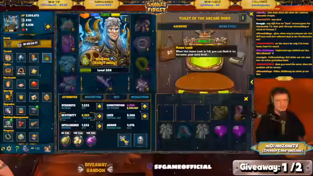 00:15:50Unmittelbar nach den Drop-Erklärungen startet der Streamer ein Giveaway. Als Schlüsselwort für die Teilnahme wird 'exclamation mark only wall one' festgelegt. Wichtig ist die Diskussion über die Account-Regeln. Es wird klargestellt, dass jeder Spieler nur einen einzigen Shakes & Fidget-Account besitzen darf, auf dem alle Charaktere eines Servers laufen. Ein Teilen von Accounts mit Freunden ist nicht vorgesehen und wird als nicht im Sinne des Spiels angesehen. Die Gewinner werden anschließend gezogen und benannt.