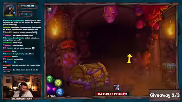 02:08:01Der Streamer beendet fast den Stream, setzt ihn aber fort, da er dachte, er hätte einen guten Gegenstand ersetzt. Er erklärt seine Strategie, warum er im Legendary Dungeon nicht ausweicht und sich stattdessen wiederbeleben lässt, um mit vollem Leben in Challenge-Räume zu gelangen. Er nimmt Fallen in Kauf, um Gold zu triggern und Monster zu besiegen. Anschließend kümmert er sich um sein Equipment, wäscht Items und optimiert seine Stats, insbesondere für Kunigunde und Bertram. Er erklärt, warum er bestimmte Items wäscht und welche Stats er bevorzugt. Er tauscht Runen aus und wirft überflüssige Gegenstände in den Kessel. Er betont die Bedeutung von Türen im Dungeon und fordert sie lautstark ein. Am Ende des Runs holt er sich zwei Waffen und bedauert, keine Quali-Runen zu haben, um legendäre Gegenstände und Edelsteine zu verbessern. Er plant, später noch einen Stream zu starten, um weiter zu pushen.