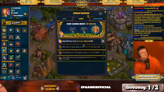 00:25:13Es finden verschiedene Diskussionen über das Spiel Shakes and Fidget statt. Der Streamer erwähnt, dass Toni Kroos früher das Spiel gespielt hat und gibt Einblicke in die Welt des Animes, wobei er unter anderem Jujutsu Kaisen, One Punch Man und Baki als Empfehlungen nennt. Als Highlight des Streams wird der Trailer für den anstehenden Legendary Dungeon angekündigt, der am Freitag starten wird. Streamer und Community äußern ihre Vorfreude und Empfehlungen zum neuen Event.