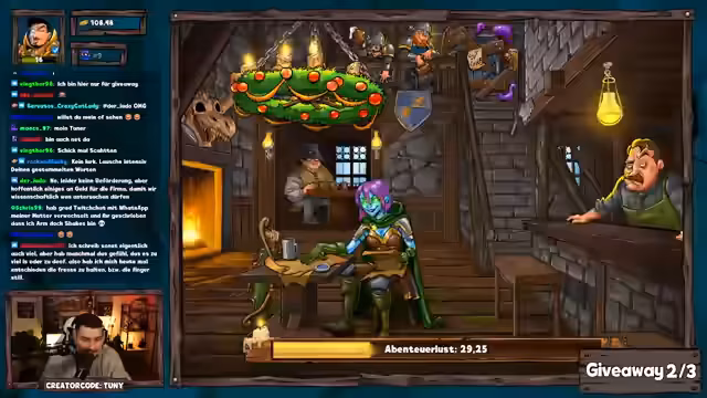 02:09:50Nach dem Giveaway wird die Ziehung der Gewinner für die verbleibenden Pakete fortgesetzt. Die Gewinner sind 'Foseli' (Paket 8), 'Wubert' (Paket 7), 'Alegron' (Paket 5) und 'Eye of Demonium' (Paket 1). Der Streamer betont, dass die Gewinner ihre Preise per Direktnachricht erhalten, dies aber aufgrund der Anwesenheit von 'MoZone' in Hamburg bis zu einer Woche dauern kann. Anschließend wird das Spiel fortgesetzt, um Ressourcen für den Legendary Dungeon am Donnerstag zu sammeln.