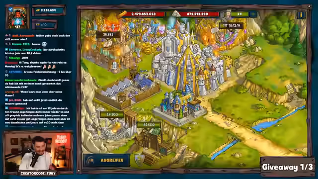 01:38:03Der Streamer führt ein Double-Giveaway durch und ruft das Keyword 'Schlachsahne' für die Teilnahme auf. Er zieht nacheinander 40 Gewinner aus dem Chat und fordert jeweils eine Bestätigung innerhalb von 20 Sekunden. Bei Inaktivität erfolgt ein 'Re-Roll'. Die Gewinner können zwischen verschiedenen Paketen wählen und erhalten ihre Codes vermutlich bis Freitag.