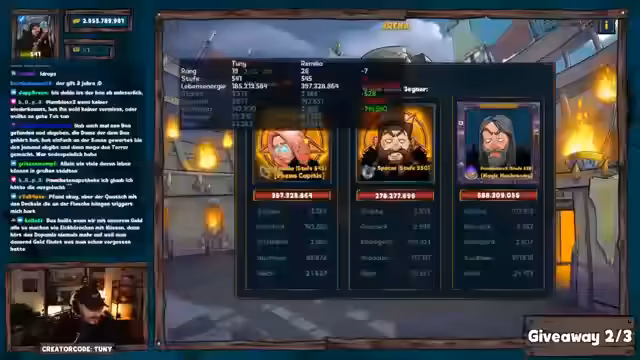 00:22:23Trotz anfänglicher Bedenken startet der Streamer spontan ein schnelles Giveaway. Als Teilnahme-Keyword wird 'GWW' festgelegt. Anschließend wechselt er zum Thema Shakes & Fidget EU20. Er schildert seinen Account-Status nach dem langen Wochenende, bei dem er nicht pushen konnte. Sein Extraktor steht bei 15-15, sein Gladiator bei 9 und sein Krieger bei 7. Er betont, dass er auf Langzeit spielen will und dranbleiben will, ohne dabei unter Druck zu geraten.
