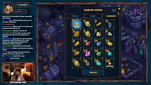 01:31:38Der Streamer geht detailliert auf die Strategien ein, mit denen sich Spieler vom Rest der Community abheben können. Er listet unzählige kleine Faktoren auf, die langfristig zu mehr Stats führen. Dazu gehören tägliche maximale Abenteuerlust, das Drehen des Glücksrades, die Nutzung von Doppel-Ertrags-Items und das Ankleiden von Epics für höhere Aura-Stufen. Wer seine Stadtwachen, Goldgruben und Akademie-Erträge zeitlich optimiert, hat ebenfalls Vorteile. Auch das konsequente Abspielen der Arena-Kämpfe und das Nutzen der Kalender-Skip-Taktik werden als entscheidende Vorteile genannt.
