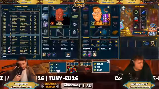 01:16:18Der Stream konzentriert sich auf das Spiel Shakes & Fidget, wobei die Gesprächsrunden um verschiedene Spielmechaniken kreisen. Es werden die All-Stats, die für den Spielverlauf entscheidend sind, hervorgehoben und über die Notwendigkeit von Einflussnahme in Form von Influencer-Krediten diskutiert. Die Diskussion betrifft auch den Fortschritt auf dem Server EU26, wobei Strategien für den Elevator-Modus und die Wichtigkeit von Ausdauer für die Weiterentwicklung thematisiert werden. Die Community wird angesprochen, um Tipps für den Mob-Fight in den höheren Ebenen zu geben.