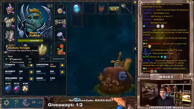 00:56:18Der Streamer überprüft seine Chancen, den neuen Dungeon 'Stein Troll' zu schlagen, die bei 12,7% liegen. Er beschließt, es einfach zu versuchen. Anschließend wird über die Bedeutung von POTIONs gesprochen und wie sie im frühen Spiel helfen können. Der Streamer erreicht Level 32 und versucht, eine XXL-POTION zu finden, um die Dungeon-Chancen weiter zu verbessern. Der Tag neigt sich dem Ende zu und der Streamer plant, mit den verbleibenden Aktionen wie Rad drehen und Expeditionen den Tag abzuschließen.