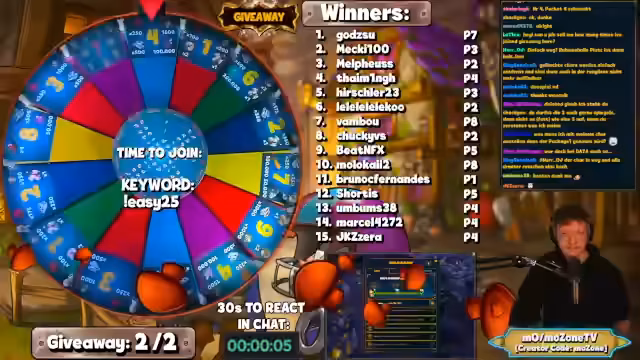 01:04:05Nachdem das Schlüsselwort 'Dokomi tickets' festgelegt wurde, startet das Giveaway mit einem längeren Timer. Innerhalb weniger Minuten sammeln sich 182 Teilnehmer ein. Die Gewinnerziehung beginnt, und der erste Teilnehmer, Krzxs, wird als Gewinner genannt. Da dieser jedoch nicht auf die Rückfrage reagiert oder nicht an dem Datum teilnehmen kann, erfolgt ein Neuzug. Der zweite Gewinner, Slickson, wird kontaktiert und bestätigt seine Teilnahme. Er erhält damit zwei Tickets für die Convention.