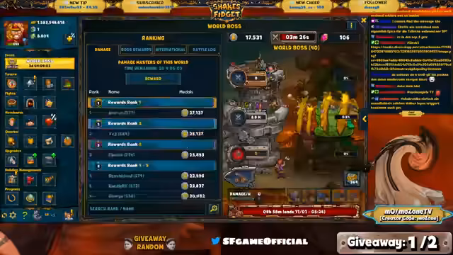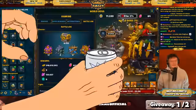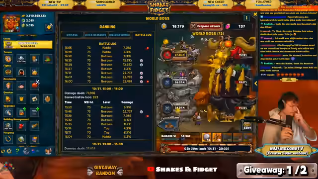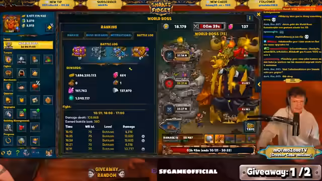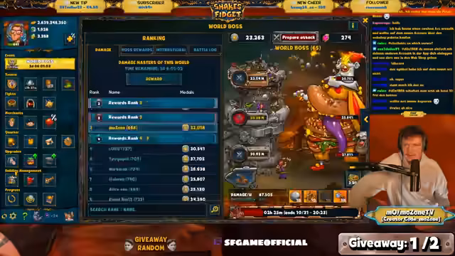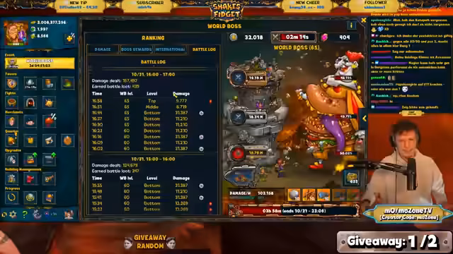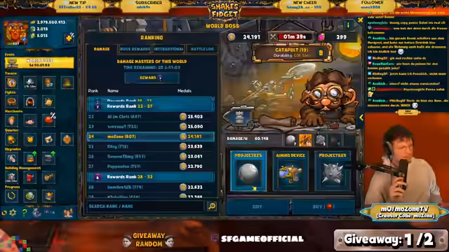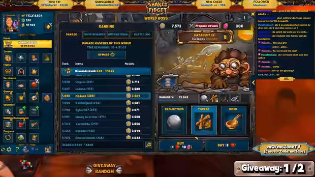 In Shakes and Fidget werden komplexe Katapult-Strategien besprochen, um den größtmöglichen Schaden zu erzielen. Die Spieler stimmen sich über World Boss Taktiken ab und optimieren ihre Angriffe auf allen Ebenen. Gleichzeitig werden Gewinner von Giveaways informiert und es findet eine humorvolle Diskussion über die beste Art, Döner zu essen, statt. Ein Würfelspiel sorgt für zusätzliche Unterhaltung und die Chance auf Pilzgewinne.