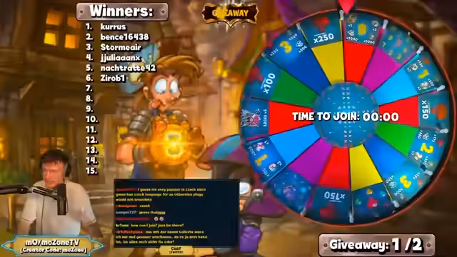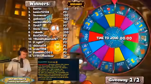 01:51:31Das zweite Giveaway beginnt nach einer Countdown. Der Streamer erläutert, dass der Gewinner über die Bot-Funktion ausgewählt wird und reaktionsschnell antworten muss, um den Preis zu erhalten. Nachdem ein Gewinner wegen Inaktivität disqualifiziert wird, wird ein Nachfolger gezogen. Die Gewinner müssen eine Frage zum Spiel beantworten, die sich auf Klassen oder Features bezieht, und erhalten ihren Preis später per Twitch-Nachricht.