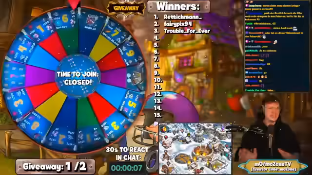 02:29:11Für allgemeine Spielfragen verweist der Streamer auf die Community-Ressourcen wie die Tavern Discord, FAQ-Kanäle und YouTube-Guides. Im Anschluss beginnt die Verlosung des Giveaways für die Zuschauer. Ein Keyword muss erraten werden, um teilzunehmen. Nachdem das richtige Keyword 'TEE' gefunden wurde, werden die Gewinner über die Twitch-Liste ermittelt und benannt. Das Gewinnspiel umfasst Packages mit Pilzen und anderen In-Game-Werten.