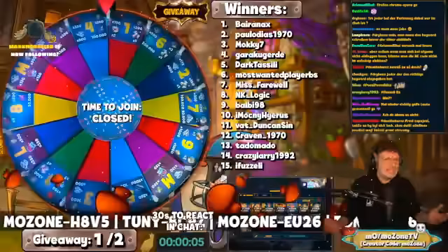 01:57:13Auf Fragen zum Arena Manager wird geantwortet, dass Platin die höchste Stufe ist. Für das Farmen von Twitch Drops wird dringend empfohlen, diese erst bei höchstem Characterlevel und höchster Festungsstufe abzuholen, da ihr Wert direkt vom Level beim Abholen abhängt. Der Streamer führt das Giveaway durch und klärt die Teilnahmebedingungen: Das Keyword muss korrekt geschrieben, aber nicht gross/kleinschreibungssensitiv sein, und Teilnehmer müssen sich durch eine Chat-Nachricht bestätigen lassen. Der Bot wählt die Gewinner zufällig aus.