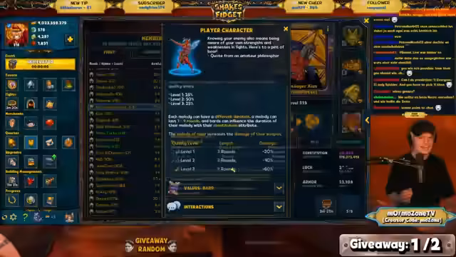 02:08:33Der Stream startet ein Duell zwischen einem Bart und einem Dämonenjäger. User können auf den Ausgang wetten. Der Streamer gibt an, wieder das Verhältnis der Start-Stats zu haben. Während des Duelle wird über das Guga-Foods-YouTube-Channel gesprochen. Das Duell endet mit 3:2 für den Streamer, trotz eines Matchpunkts für den Gegner und einer hohen Chance auf ein Wiederbeleben. Die Overall-Kanalpunkte des Streams rücken der Marke von 3 Millionen näher.