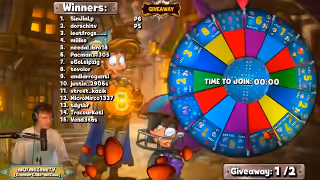 01:57:50Nach mehreren vergeblichen Versuchen, einen Dungeon zu bezwingen, wird ein kleiner Kampf zwischen dem Streamer und einem Zuschauer ausgetragen, um die Spannung aufrechtzuerhalten. Im Anschluss beginnt die eigentliche Giveaway-Verlosung. Teilnehmer müssen einen spezifischen Keyword in den Chat schreiben, um teilzunehmen. Die Verlosung wird per Rad durchgeführt und verschiedene Pakete werden vergeben, wobei die Zuschauer gebeten werden, auf ihre Gewinne zu reagieren.