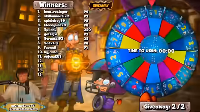 00:19:20Ein Giveaway wird gestartet, bei dem die Zuschauer ein Schlüsselwort in den Chat schreiben müssen, um teilzunehmen. Ein Countdown läuft für eine Minute, um die Teilnehmer zu erfassen. Die Verlosung erfolgt durch das Drehen eines Glücksrades. Die Gewinner werden einzeln aufgerufen und müssen im Chat antworten, um ihren Preis, der aus Ressourcenpaketen besteht, einzufordern.