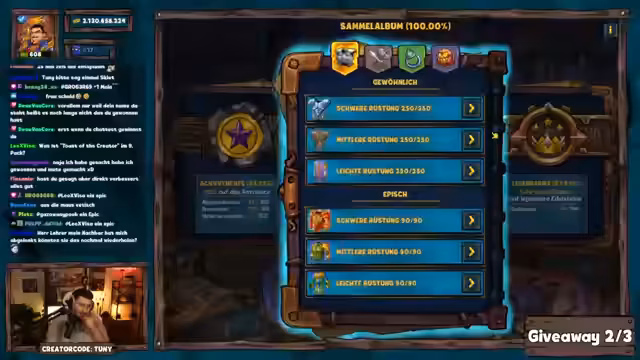 02:24:40Nach zahlreichen Gameplay-Diskussionen startet der Streamer ein Giveaway mit dem Keyword 'World Boss Hype', bei dem Teilnehmer in kurzen Zeitfenster antworten müssen. Direkt im Anschluss wird die Dungeon Challenge durchgeführt. Der Gewinner, TwitchCasti, muss versuchen, den Boss Poseidon in unter 15 Kämpfen zu besiegen, um 500 Pilze zu erhalten, und schafft dies nach mehreren Versuchen.