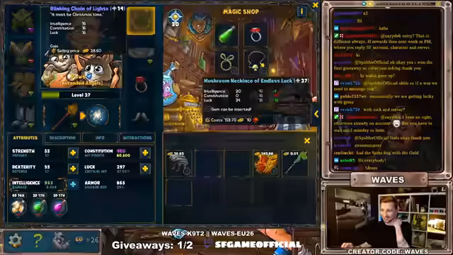 00:28:53Nach der Verlosung konzentriert sich der Stream auf das Gameplay-Ziel, Level 26 abzuschließen. Es wird nach Ausrüstung mit Sockel-Slots gesucht, um die Chancen im Dungeon zu verbessern. Nach dem Finden geeigneter Gegenstände und dem Schmücken mit Juwelen wird die Chance für den Dungeon-Einstieg erhöht. Das Hauptziel ist es, Level 30 zu erreichen und die ersten Dungeons zu besiegen.