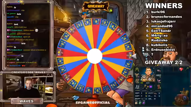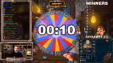 01:31:23Queen Mars wurde als zehnter und letzter Gewinner des Giveaways bekannt gegeben. Anschließend wurde ein Glücksrad gedreht, um für jeden der zehn Gewinner zu bestimmen, welchen Preispaket sie erhalten. Die Verteilung der Preispakete war sehr einseitig, wobei Package 8 am häufigsten gezogen wurde. Der Streamer erklärte die Inhalte der Pakete und hob den Vorteil von Gold und Basisstats für die Stärke eines Charakters hervor.