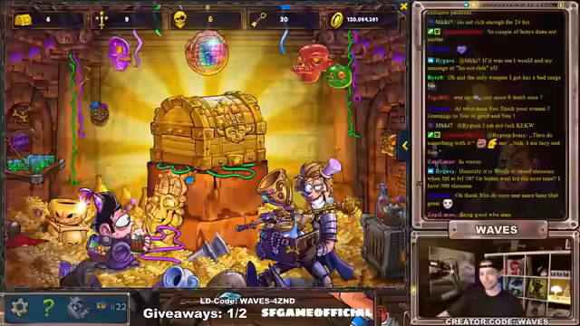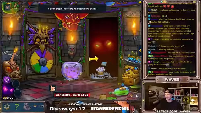 01:20:41Es wird beschlossen, Level 300 zu erreichen, ungeachtet der Notwendigkeit, ein Giveaway zu veranstalten. Die Person erkennt, dass es dumm ist, da es in anderen Dungeons einfachere Chancen gibt, auch wenn diese weniger XP geben. Aufgrund von Problemen mit der Enter-Taste und der Nichterreichbarkeit des Servers kann Level 300 nicht erreicht werden. Als Entschädigung wird ein Giveaway veranstaltet. Das Keyword für das Giveaway ist "!Why me?". Während die Teilnehmer das Keyword eingeben, versucht die Person, sich wieder einzuloggen, um Level 300 zu erreichen. Es wird angekündigt, dass das Giveaway in wenigen Sekunden geschlossen wird. Trotzdem fehlt noch ein Drittel eines Levels bis 300.