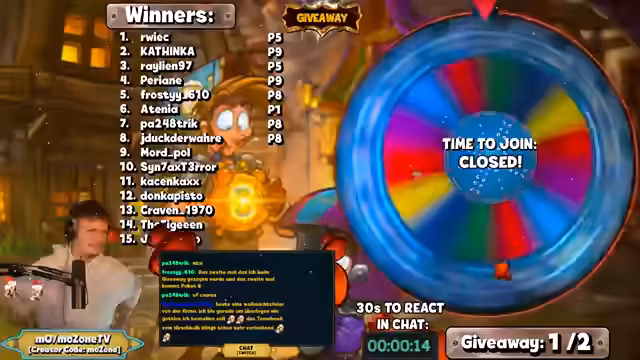 01:52:28Das Giveaway läuft mit 309 Einträgen bei bis zu 2500 Zuschauern. Die Namen der Gewinner werden per Zufallsgenerator ausgewählt, wobei die Präsentation der Namen einige technische Unannehmlichkeiten mit Discord-Namen zeigt, die korrigiert werden müssen. Die Verlosung selbst ist ein zentraler Höhepunkt, bei dem die Gewinner innerhalb von 30 Sekunden antworten müssen, um ihren Preis zu sichern.