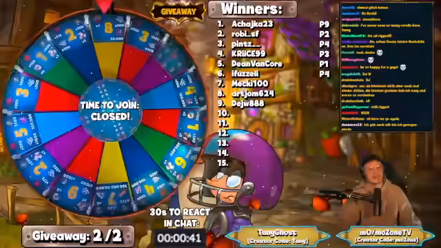 02:01:31Ein Giveaway wird offiziell gestartet. Das vorgegebene Keyword lautet 'StopBots'. Die Zuschreiber werden angewiesen, dieses einmal ohne Spam in den Chat zu schreiben, um teilzunehmen. Der Streamer verliest die Namen der Gewinner und gibt ihnen jeweils 30 Sekunden Zeit, mit einer Nachricht im Chat zu reagieren. Es kommt zu einigen Verwirrungen, da einige Gewinner nicht rechtzeitig antworten. Die Chatbots sorgen für einen fairen und zufälligen Auslosungsprozess. Ein Moderator muss aufgrund eines toxischen Verhaltens einen Nutzer bannen.