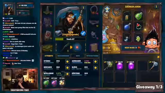 01:43:19Der Stream ging tief in das Thema Ressourcenmanagement ein. Erfahrung (XP) wurde als die wichtigste Ressource im Early-Game bezeichnet, da sie das Leveln beschleunigt. Dazu gehört das frühzeitige Farmen des Sammelalbums für einen XP-Boost. Im Endgame hingegen ist Gold das Wichtigste, da es direkt in die Basis-Stats investiert werden kann. Ein weiteres Min-Maxing-Thema war das Skillen der Attribute: Hauptattribute sollten priorisiert werden, während Nebenattributes wie Glück ab einer bestimmten Crit-Chance (50%) irrelevant und Goldverschwendung werden.