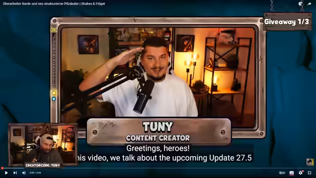 01:39:44Die Details zum offiziellen Twitch-Streamer-Set werden vorgestellt. Jedes Item hat einen spezifischen Hintergrund: Der Helm trägt das Logo der Gilde 'Tavernenflotte', eine Zeichnung vom Streamer selbst. Die Waffen sind symbolisch, wie die 'Moos-Tasse' als Kaffeewaffe oder die 'Sense mit Preisschild'. Items wie der 'Jam-Miner Handschuh' und die 'Drop-Rüstung' beziehen sich direkt auf Memes und Ingame-Mechaniken aus der Community.