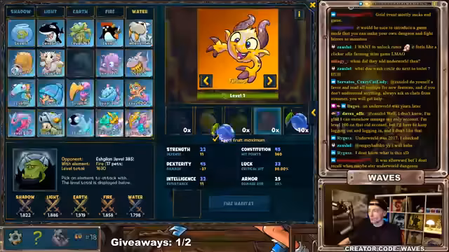 00:28:52Nach dem Giveaway beginnt der EO22-Push. Waves rüstet zunächst einen Edelstein aus und lädt Dungeon-Chancen vor. Das Ziel ist es, mindestens zehn Level aufzusteigen. Es folgen Dungeon-Kämpfe und Levelaufstiege im Eiltempo. Eine Diskussion über Runen auf Gegenständen entsteht, und Waves erklärt, dass Runen ausgetauscht werden können. Er tauscht eine 1%-Rune gegen eine 2%-Rune auf einem Ausrüstungsgegenstand aus. Waves spricht über die kommende Klasse des Plague Doctors, die voraussichtlich in den nächsten Servern (EU23 oder EU24) erscheinen wird. Ein Zuschauer bedankt sich für die Erinnerung, den Counter zu bearbeiten. Waves setzt den Dungeon-Push fort, tauscht Ausrüstung und Runen aus und äußert den Wunsch nach einer 2% HP-Rune.